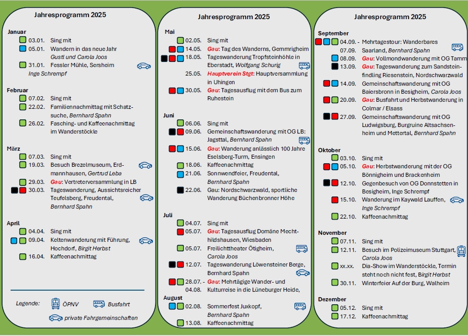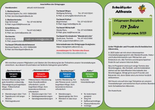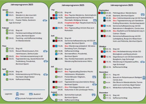 Wanderplan 2025 der Ortsgruppe Besigheim