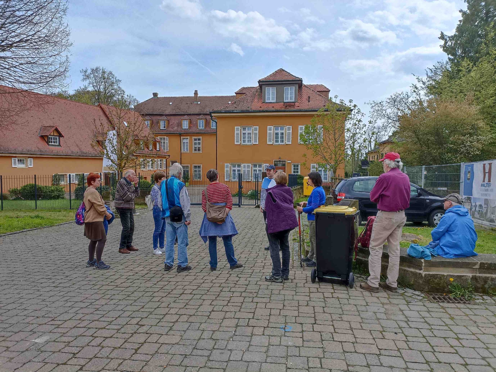 Nach einem Impuls über Martinus verließen wir den Pilgerweg und wanderten oberhalb von Freudental zur evangelischen Kirche dort. Herr Bertet junior und sein Vater erläuterten uns die Geschichte der Kirche. Kundig und geschichtlich fundiert wurden die Wanderer durch den Ort Freudental geführt. Gespannt lauschten wir den Ausführungen über die Ansiedlung der Juden in Freudental, dem Bau der Synagoge und die Umstände des Schlossbaus.