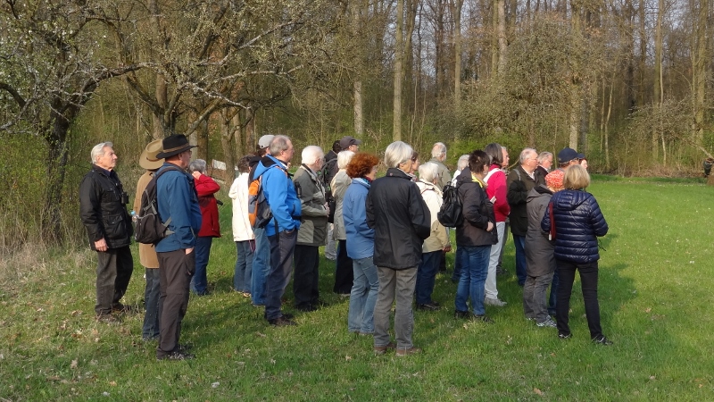 Auch die fehlende Winterfeuchte wurde an den Zulaufgräben des Baumbachs sichtbar – alles zu trocken. Regen wäre dringend nötig. Neben Beobachtungen von Meisen, Buchfinken, Milanen, Rabenkrähen oder Eichelhähern usw. kam auch die Frühlingspflanzenwelt nicht zu kurz.